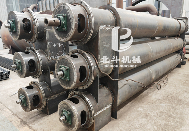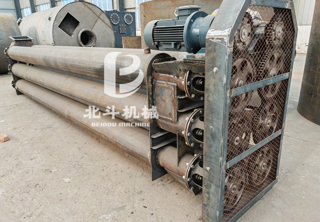 冷炭出料機(jī)可以達(dá)到冷卻物料的目的,同時(shí)減少占用空間。水冷內(nèi)螺旋輸送機(jī)包括進(jìn)料單元、出料單元、筒體、冷卻單元、驅(qū)動(dòng)單元和支撐單元,進(jìn)料單元和出料單元分別設(shè)置于所述筒體的兩端,驅(qū)動(dòng)單元使筒體圍繞其中心對(duì)稱軸回轉(zhuǎn),支撐單元支撐筒體,所述筒體包括外筒體和內(nèi)筒體,靠近進(jìn)料單元的外筒體外周設(shè)置有一定長(zhǎng)度的夾套,冷卻套筒從一端進(jìn)水,從另一端排水,水和炭不接觸,提高了炭的品質(zhì),具有更好的冷炭效率,從而將成品炭的溫度降至常溫。
